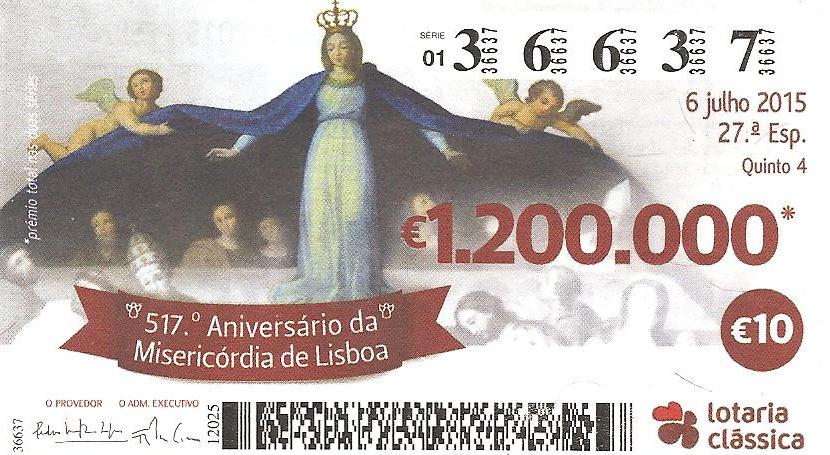 Acontece que a Santa Casa da Misericórdia de Lisboa celebra todos os anos o seu aniversário no dia 2 de Julho. Assim aconteceu mais uma vez em 2015. Todos os anos há uma emissão da lotaria evocativa desse mesmo aniversário a 2 de julho.