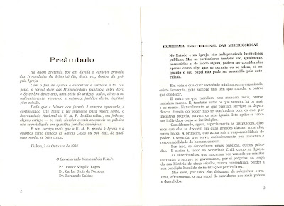 Só já uma forma de se saber o que se passa dentro da União das Misericórdias Portuguesas, a qual passará, necessariamente, por uma intervenção articulada, ou não, entre a Conferência Episcopal Portuguesa (Entidade que de facto e de direito Tutela a União das Misericórdias Portuguesas), O Ministério do Trabalho e da Solidariedade (porque financia as actividades estatutárias da UMP) e a Procuradoria Geral da Repúblia/Ministério Público (porque é q única entidade com competência para investigar).