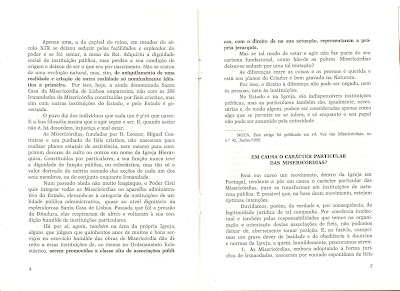 Uma nota que parece de somenos importância, mas que não o sendo merece uma referência. Quer o Parecer do Revisor Oficial do Contas quer o Parecer do Conselho Fiscal, este ano pela primeira vez, não foram entregues aos representantes das Msiricórdias, os quais votaram dois documentos que não lhe foram dados a conhecer.